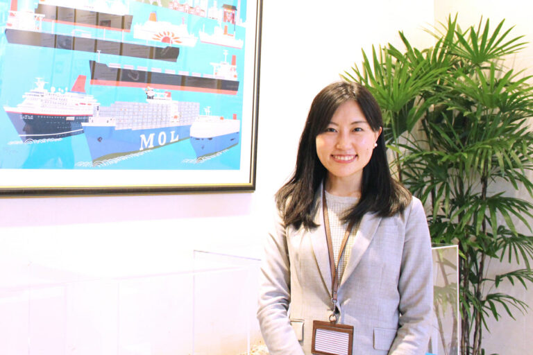 海運会社の商船三井で働く吉田詩織さん。8年間のキャリアの中で、香港での海外勤務や社長秘書等、様々なご経験をされています。
